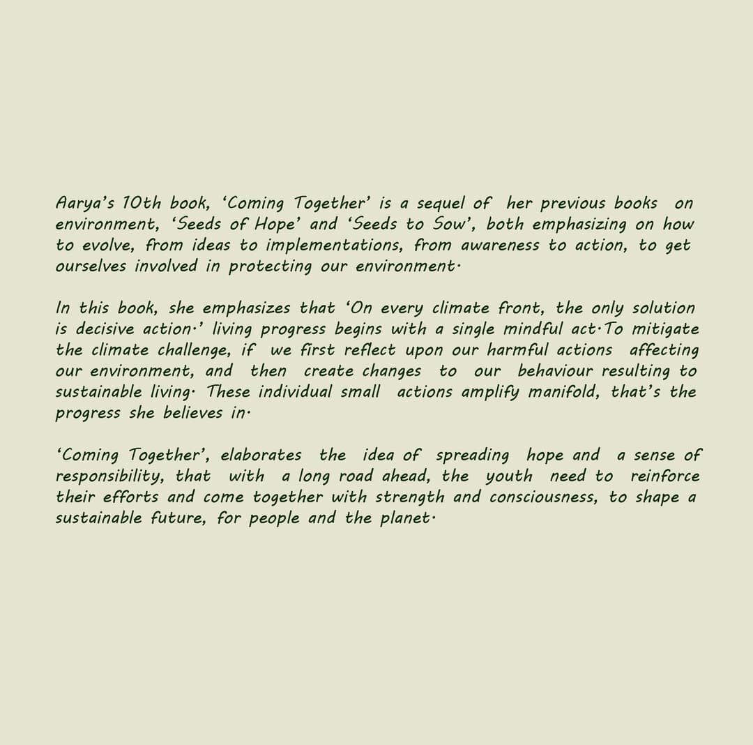 This book, Coming Together, emphasizes on how, with the right mindset, we, youth can be the conscious citizens, for a better tomorrow.