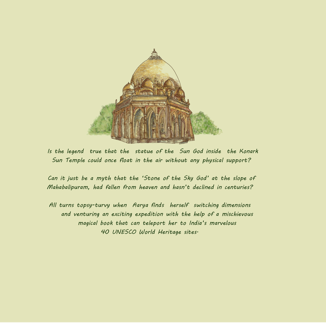 Does her Pa’s well preserved magical book on the Marvels of India help her on her journey? Placing her fingers on the pictures of the Heritage Sites she wanted to go to, Aarya twirls through different realms and finds herself teleported to the ancient marvels of India.